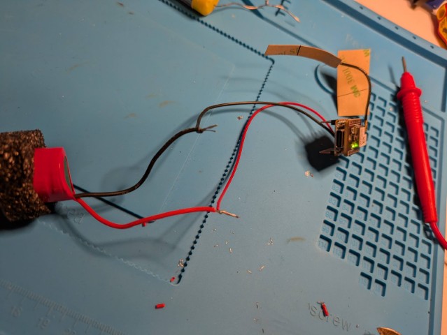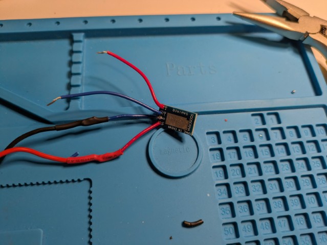 The pads and connections on these are SMALL, like really small. It took a lot of time to ensure that I didnt get solder all over the board. In future, if I do this again I will look to get a third hand to help hold things in the right place. With that finally connected, I connected it to the battery to ensure that everything turned on as expected.