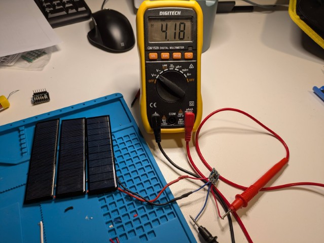 With the solar panel connected to the MPPT controller, I tested it to see if it was working as I expected. I did this by placing the solar panels under a light on my desk, and then covering them to see if the power dropped.