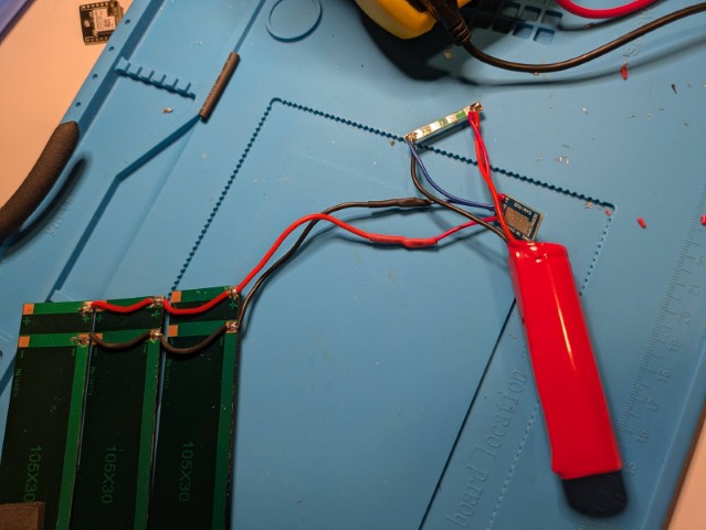 Next I gently placed the wires back in and placed the MPPT controller on one side (With the LEDs facing outwards so I could see if it was charging) and the BMS on the other side.