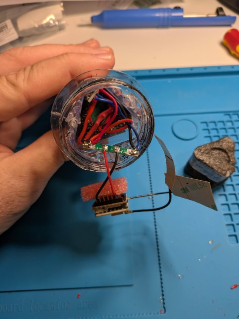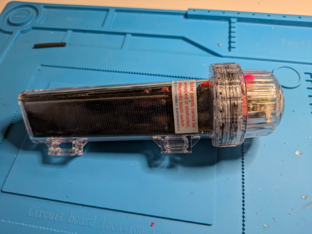 I followed the instructions on the instructable page to open the Solar Buoy. It took me a few attempts (I was being really cautious not to break anything) but eventually the glue (or whatever the use to seal it) breaks and it unscrews. It also makes a mighty mess, so maybe best done outside.