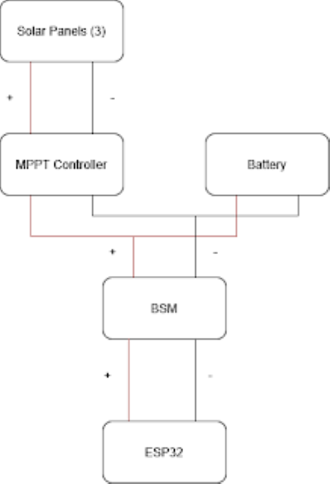 Next was to put all of the devices together that were on the battery side of the BMS. I soldered the battery, and the MPPT controller (Battery side) directly to the BMS.